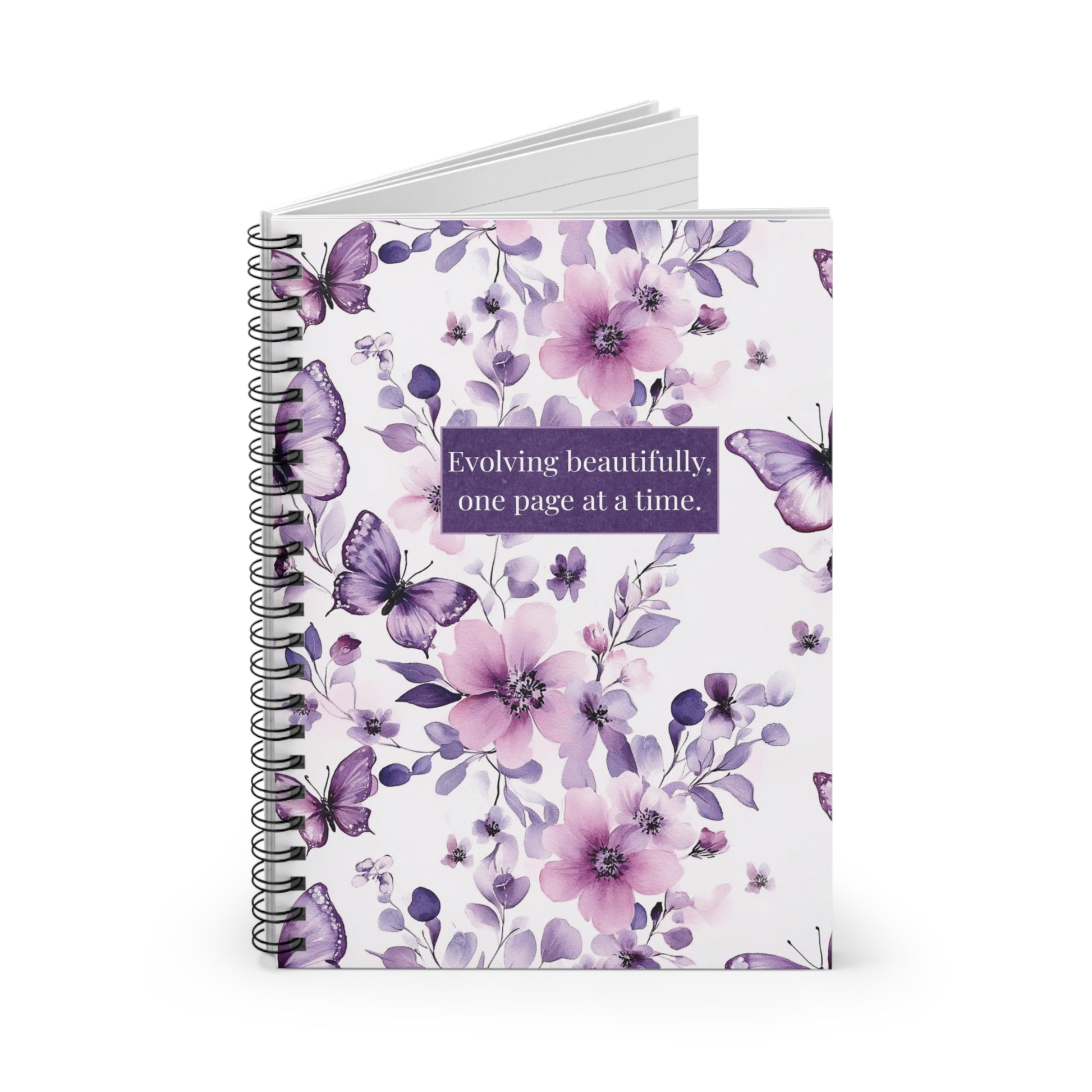 Floral Butterfly Spiral Notebook — "Evolving beautifully, one page at a time."