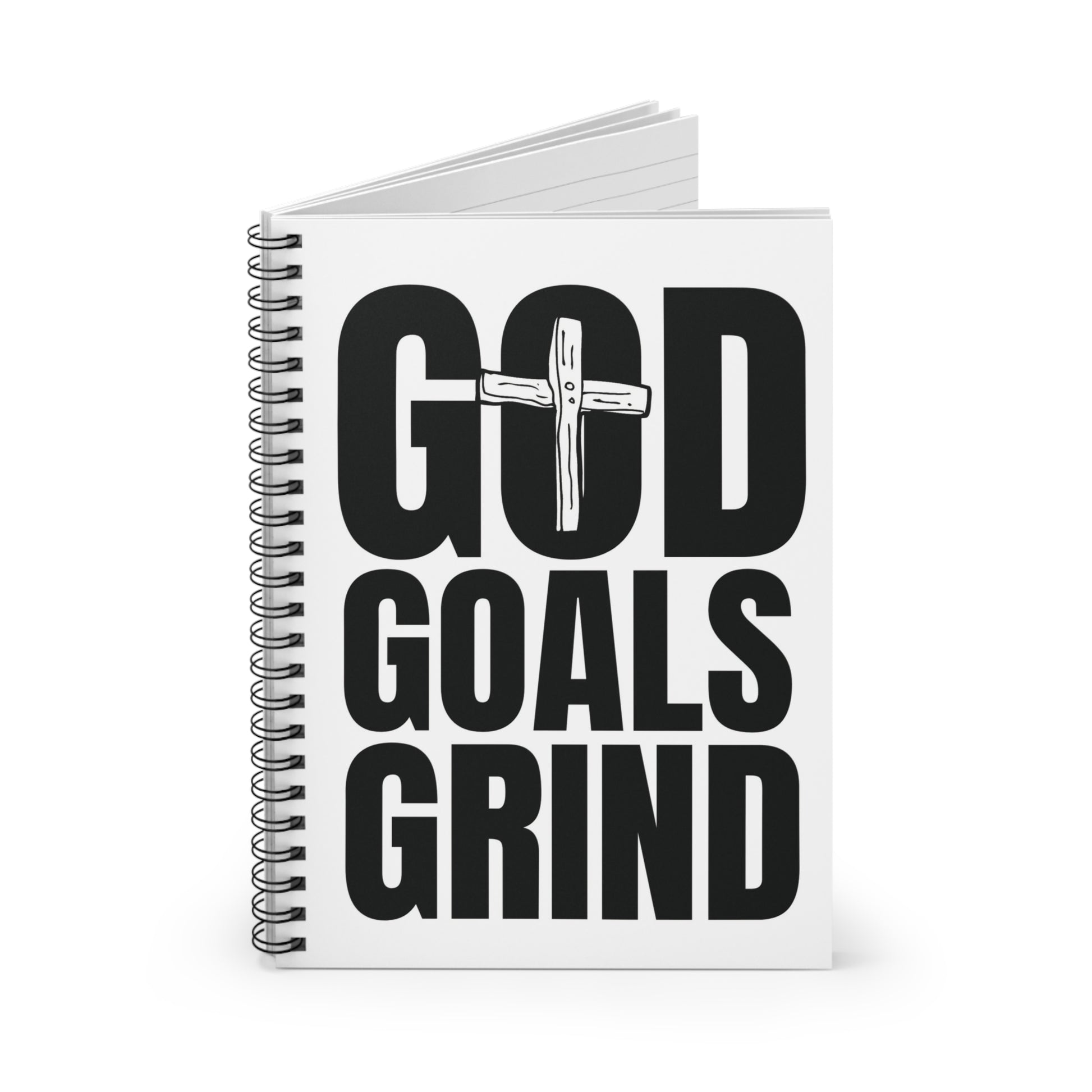 God Goals Grind Spiral Notebook — Christian Inspirational Ruled Journal